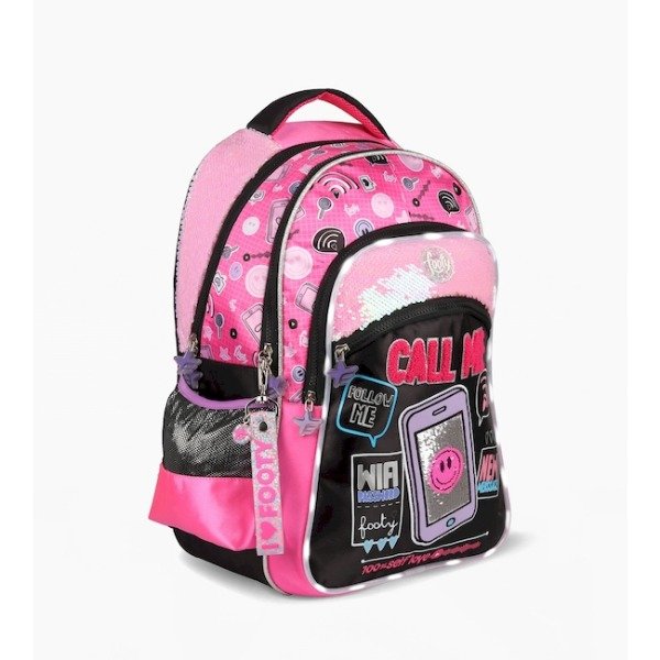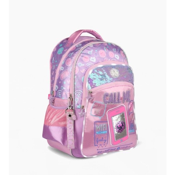 Incluye: - Llavero de regalo - Con tiras reforzadas y manijas de agarre - Con 3 compartimentos y 2 bolsillos laterales para botella - Estampado de raso, lentejuelas reversibles y frente con apliques bordados y de toalla - Material: Poliéster - Capacidad: 20 L.