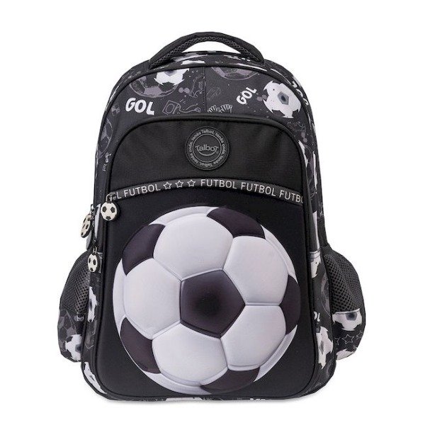Modelo: Jugador - Incluye: * 4 Cierres * 2 Bolsillos frontales * 2 Bolsillos para botella * Tira cierre acorde a la estampa, en goma * Espalda y tiras acolchadas impresas * Mix de texturas y mucho brillo - Medidas: 46 x 32 x 15 cm. - Pulgadas: 18" - Peso: 585 g. - Capacidad: 30 litros