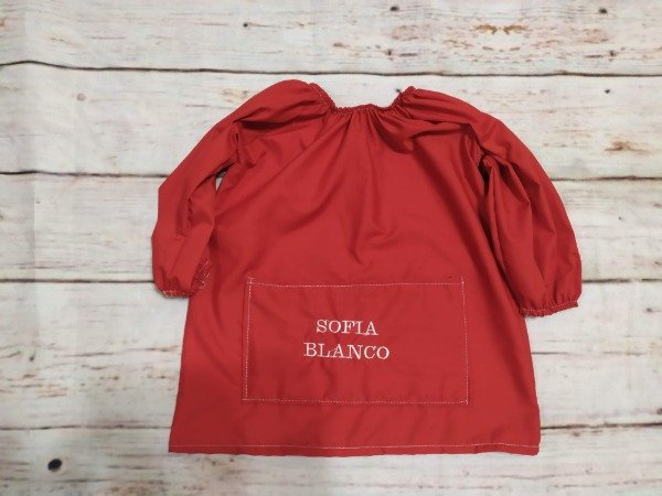 Pintor tela algodón con elástico en puños y cuello. Con tira para colgar. Media espalda abierta.